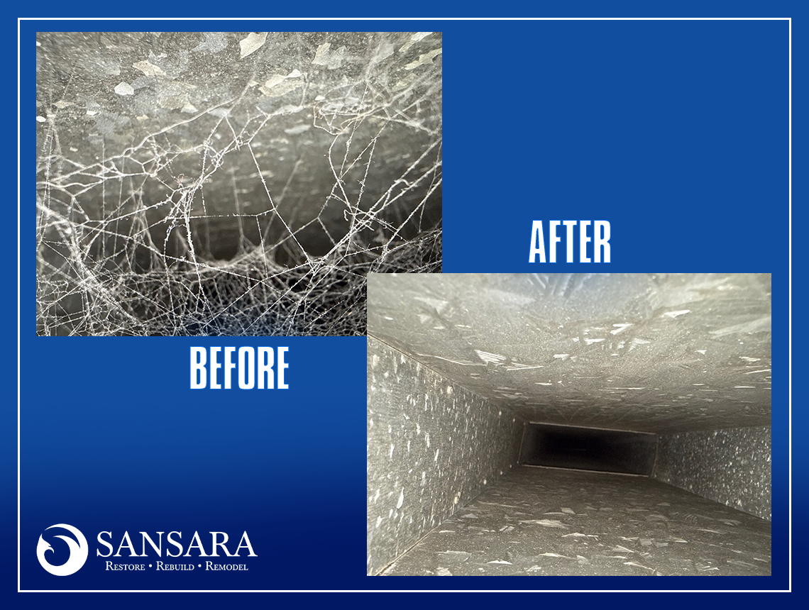 Over time, dust, debris, and cobweb buildup inside air ducts can restrict airflow and circulate contaminants throughout your home. In this project, our team inspected a system with significant particle accumulation and heavy debris that had been impacting indoor air quality. Using specialized cleaning equipment, we thoroughly removed the buildup, restored proper ventilation, and helped create a cleaner, healthier environment for the homeowner. Regular air duct cleaning not only improves air quality but also supports HVAC efficiency and reduces allergens in the home. If your vents produce odors, visible dust, or inconsistent airflow, it may be time for a professional cleaning. Trust Sansara 24/7 Restoration & Remodeling to keep your system running safely and efficiently. Call today to schedule your air duct inspection.